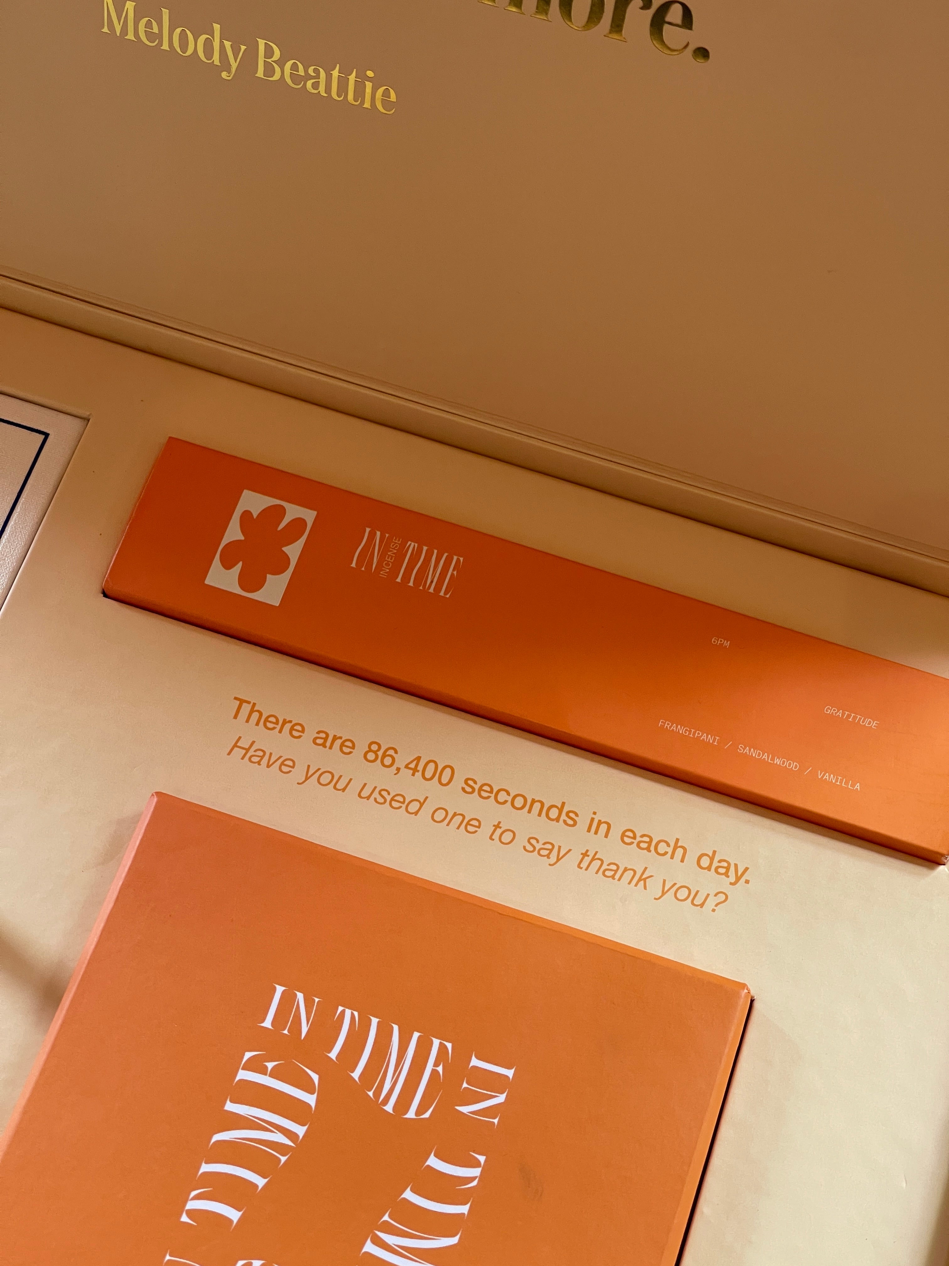 • In Time 6PM Gratitude Incense ($36) – Our best-selling scent, created for evening presence.